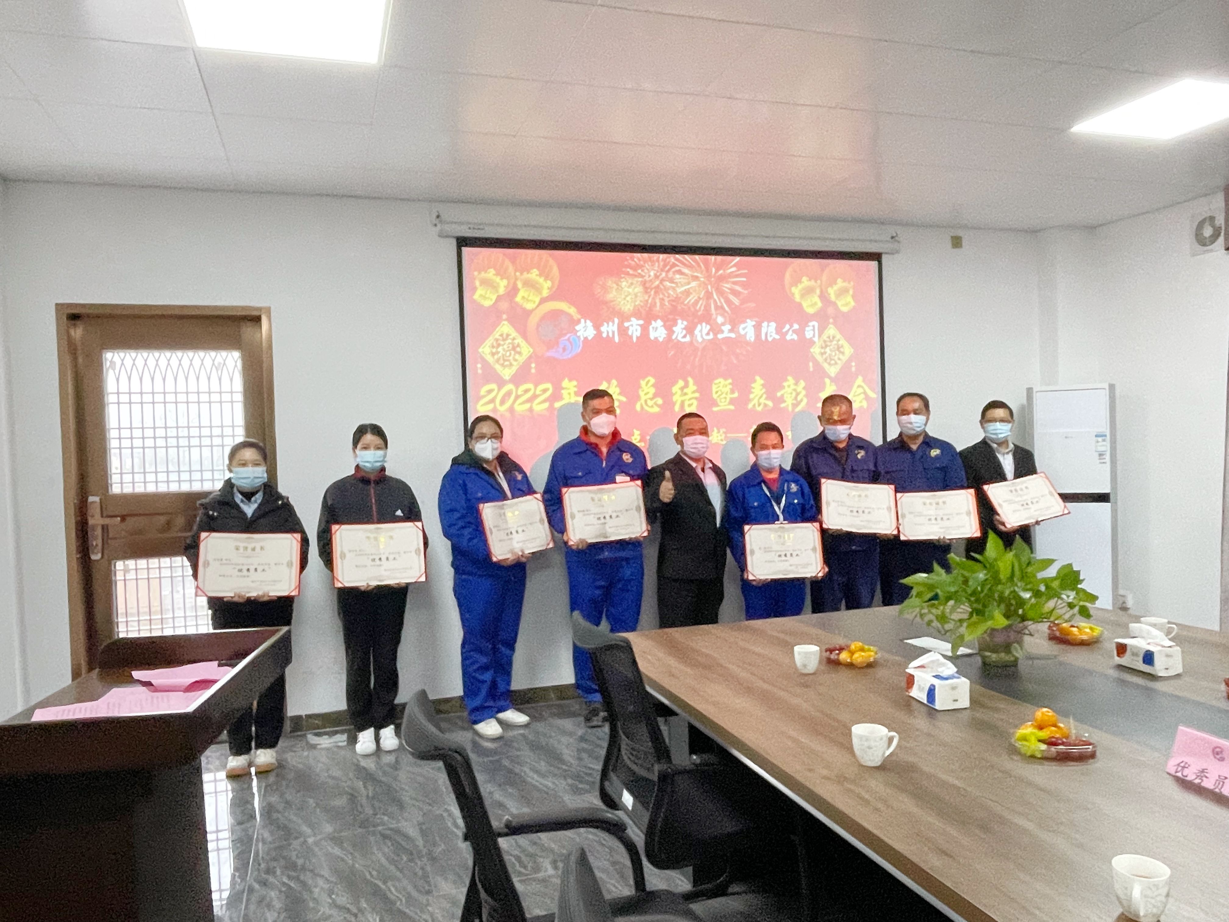 砥礪前行共奮進,奮發(fā)有為開新篇。為總結過去,展望未來,鼓勵先進,表彰優(yōu)秀,2023年1月9日下午,梅州市海龍化工有限公司2022年終工作總結暨表彰大會在總部辦公樓會議室隆重舉行。