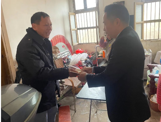 新年將至,歲寒情暖。在2024年新春佳節(jié)即將來臨之際,海龍化工到文福鎮(zhèn)暗石村開展愛心慰問暖冬行動。海龍化工工會主席余佛龍與暗石村委會丘遠忠書記等村委干部一同走訪慰問了3戶貧困學(xué)生和困難戶,向他們發(fā)放慰問金及米、油等物資,并對他們致以誠摯的慰問和新春祝福,讓他們溫暖過冬,溫馨過節(jié)。